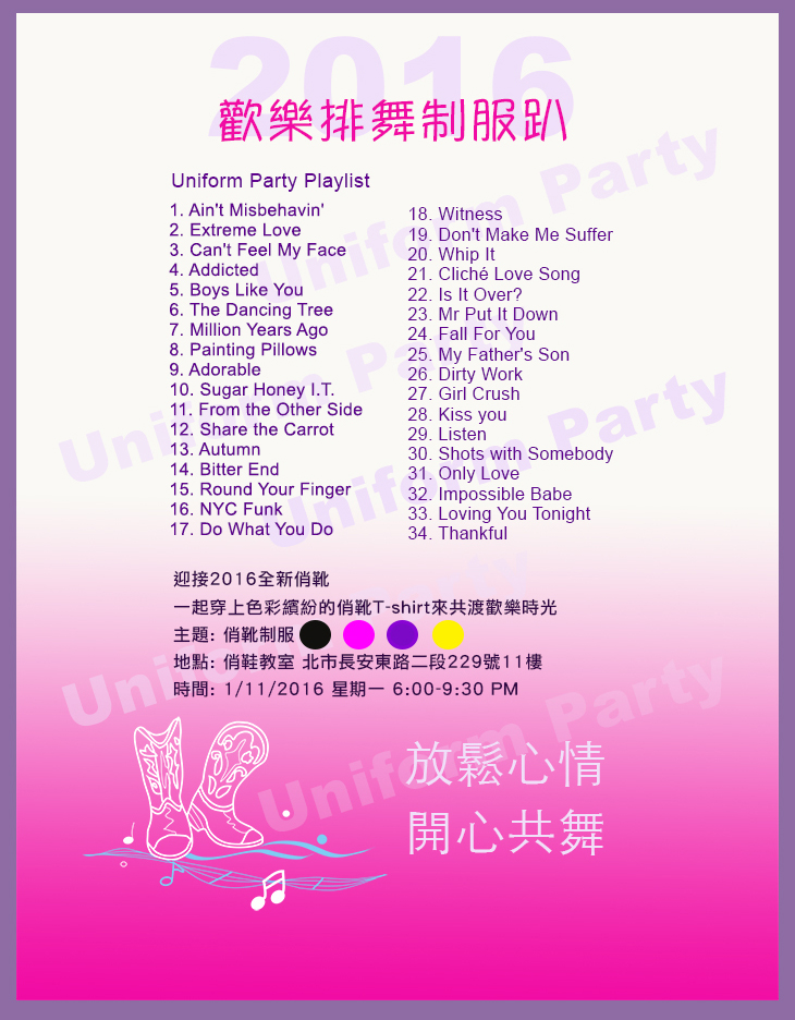 俏靴 歡樂排舞 制服趴 Class Uniform Party (1/11/2016)